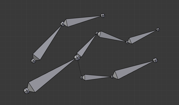 Bones relationships also have important consequences on how selections of multiple bones behave when transformed. There are many different situations which may not be included on this list, however, this should give a good idea of the problem: