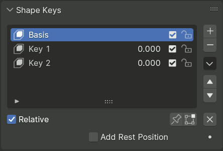 With relative shape keys, the value shown for each shape in the list represents the current weight or influence of that shape in the current Mix.