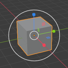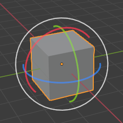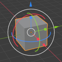 A gizmo always has three color-coded axes: X (red), Y (green), and Z (blue). You can drag an axis with LMB to transform along it. The Move and Scale gizmos additionally have small colored squares for transforming along two axes in one go.