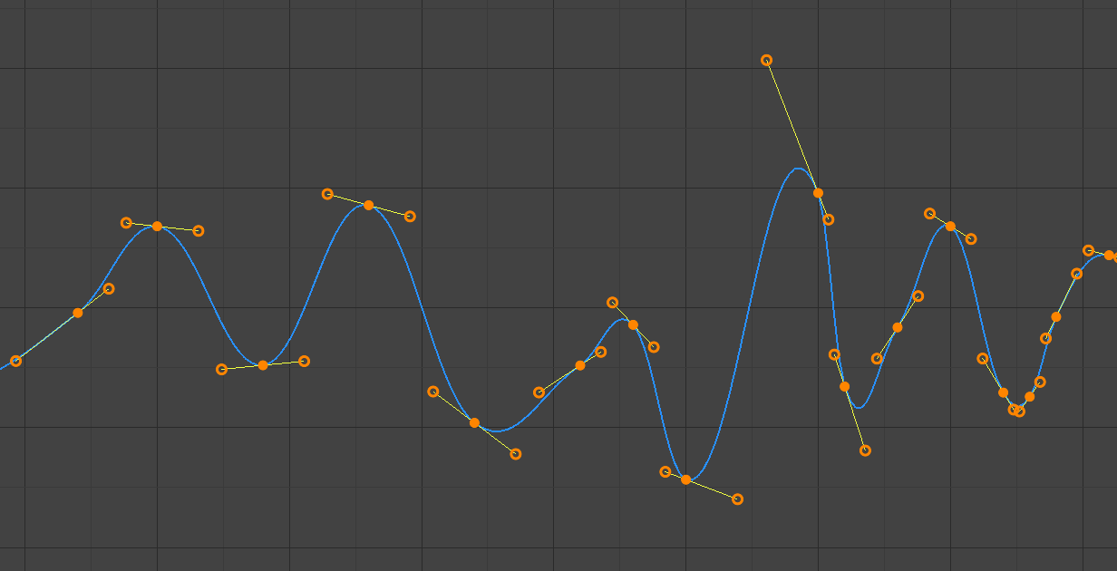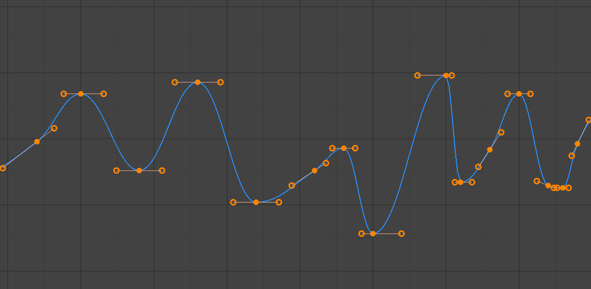 The mode also tends to overshoot and oscillate more with fully Automatic handles in some cases (see the image above). So it is recommended to use Auto Clamped by default, and only switch to Automatic handles in places where this is desired behavior. That effect can also be reduced by adding in-between keys.
