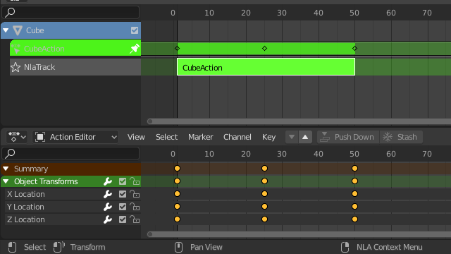 Enters Tweak Mode for the selected strip’s action, making its keyframes available for editing in e.g. the Graph Editor. In addition, marks the strip’s track as Solo, muting all the other tracks – this way, they no longer influence the animation and you can focus exclusively on the action you’re editing.