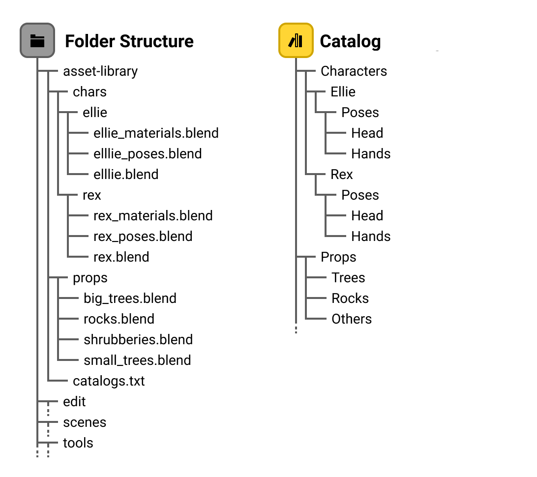 For more technical information, see Asset Catalogs on the Blender Developer Documentation.