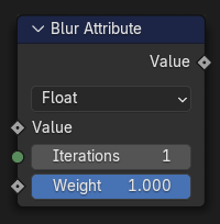 The Blur Attribute node smooths attribute values between neighboring geometry elements.