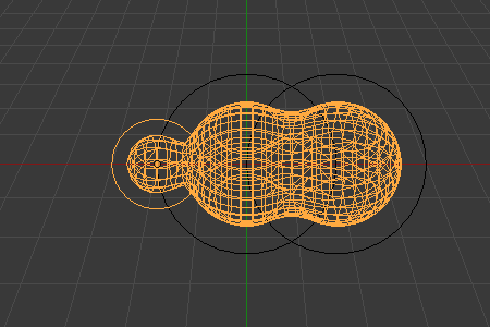 For example, in Fig. Meta ball base., only the lower sphere (the parent) has been selected, and you see that both the parent’s mesh and all of the children’s meshes are now highlighted.