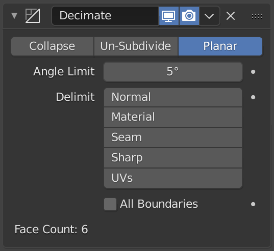 When enabled, all vertices along the boundaries of faces are dissolved. This can give better results when using a high Angle Limit.
