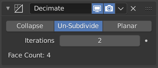 The number of times to perform the un-subdivide operation. Two iterations is the same as one subdivide operation, so you will usually want to use even numbers.