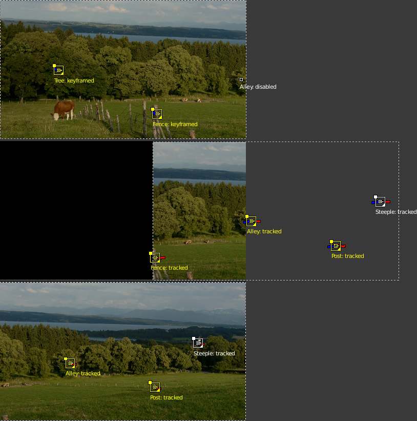 Thus, as foundation for any image stabilization, we need tracked image features to derive the movements. These tracking points or “tracks” can be established with Blender’s image feature tracking component The right choice of points to track is somewhat tricky, yet crucial for successful image stabilization. Often, we’re here because we’ll have to deal with imperfect footage. In such cases, the averaging of tracks helps to work around image or tracking errors at some point. Moreover, when the footage contains perspective induced movements, symmetrically placed tracking points above and below the horizon can be used to cancel out spurious movement and get stabilization to the focal area in between.
