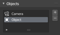 This panel contains a list view with all objects which can be used for tracking, camera or object solving. By default there is only one object in this list which is used for camera solving. It cannot be deleted and other objects cannot be used for camera solving; all added objects are used for object tracking and solving only. These objects can be referenced from Follow Track and Object Solver constraints. Follow Track uses the camera object by default.