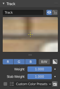 This setting overrides the default marker color used in the Clip editor and 3D Viewport, and it helps to distinguish different type of features (for example, features in the background vs. foreground and so on). Color also can be used for “grouping” tracks so a whole group of tracks can be selected by color using the Select Grouped operator.